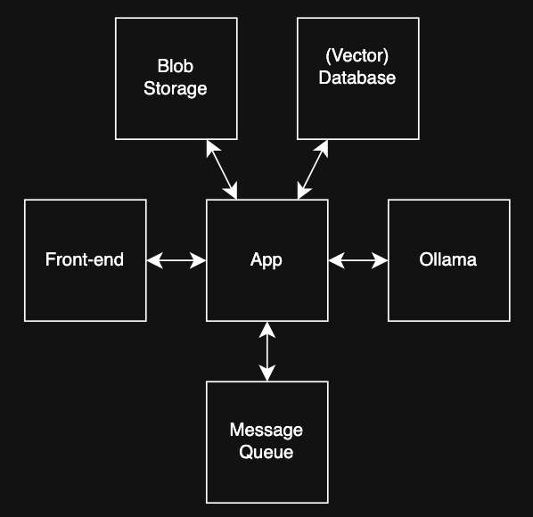 Postgres handles all the relational data like document meta-data, users, usergroups and text-chunks. Additionally Postgres offers an extension that I use to save vector-data like the embeddings we're aiming to create. This is very convenient for my use-case since I can allow vector-search on a table, joining that table to the users-table, ensuring that each user can only see their own data.