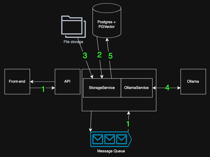 file_idis published to a message queue - the request is completed; the users can continue using the front-end. Heavy processes (chunking, embedding) happens later in the background)